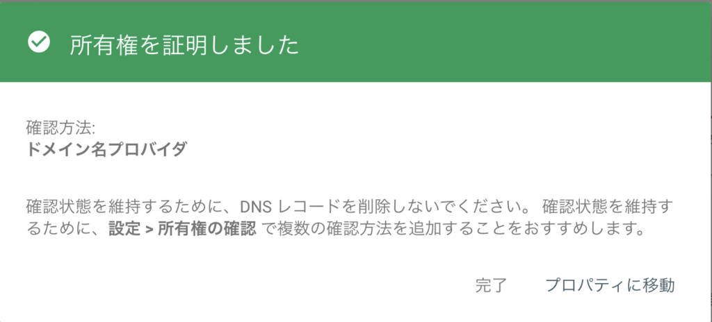 最後に、Google Search Consoleに戻って、先ほど押さなかった「確認」ボタンを押してください。